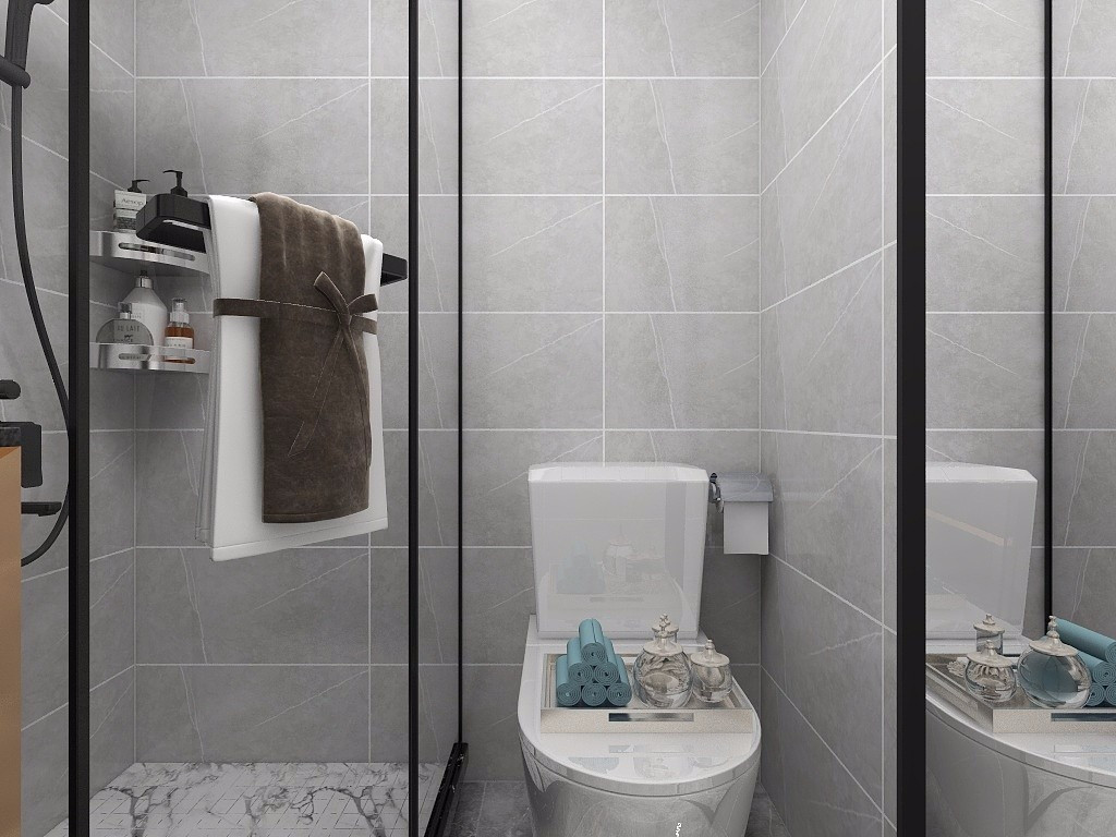 衛(wèi)生間較小,采用了鉆石型淋浴房,滿足需求的同時又節(jié)約面積