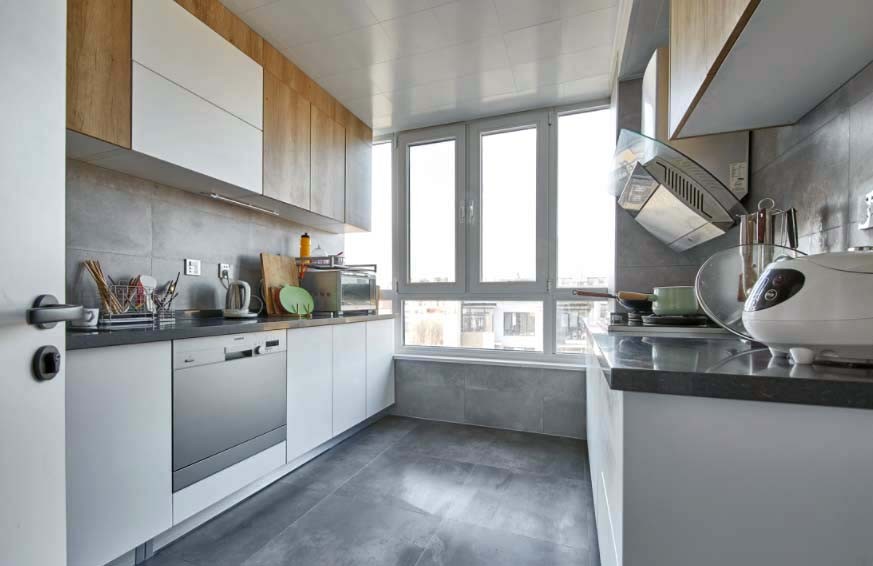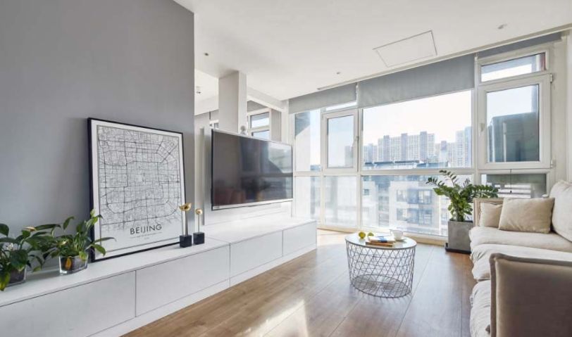整個陽臺一側全部打通,客廳被移出來,光線被限度的引入室內,動線更加合理舒服。