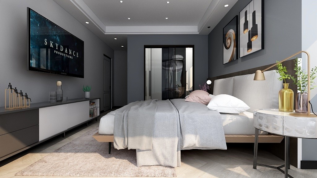 家具以簡單造型為主,主調采用黑白灰色調