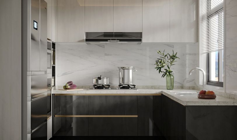 開放式廚房將元、色彩、照明簡化到最少,提高質感要求