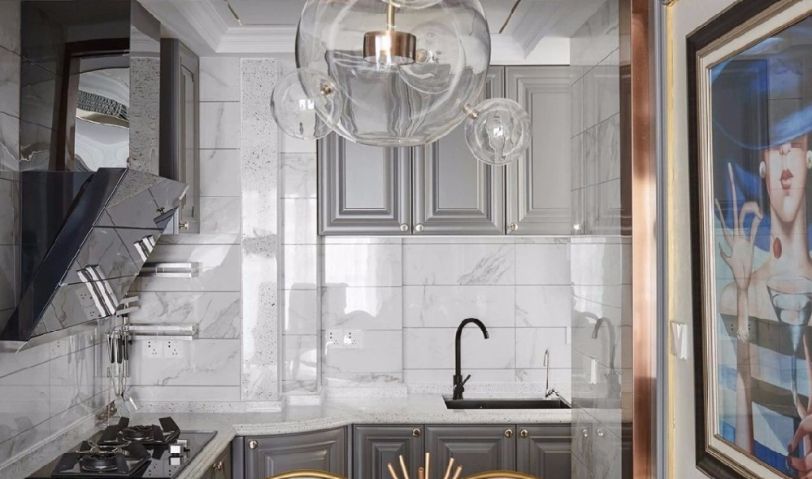 廚房為敞開式廚房,簡單的墻磚顏色,顯得整體感更充足。
