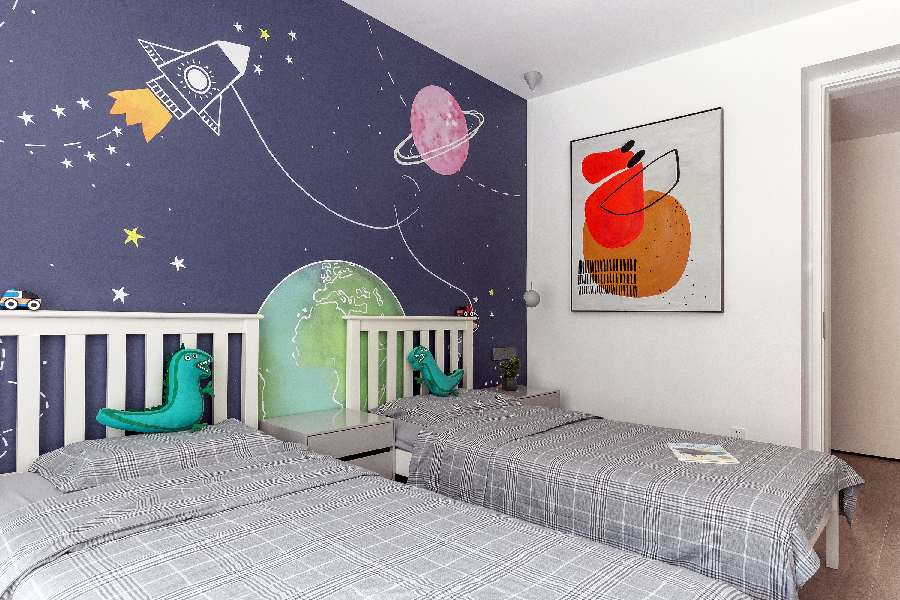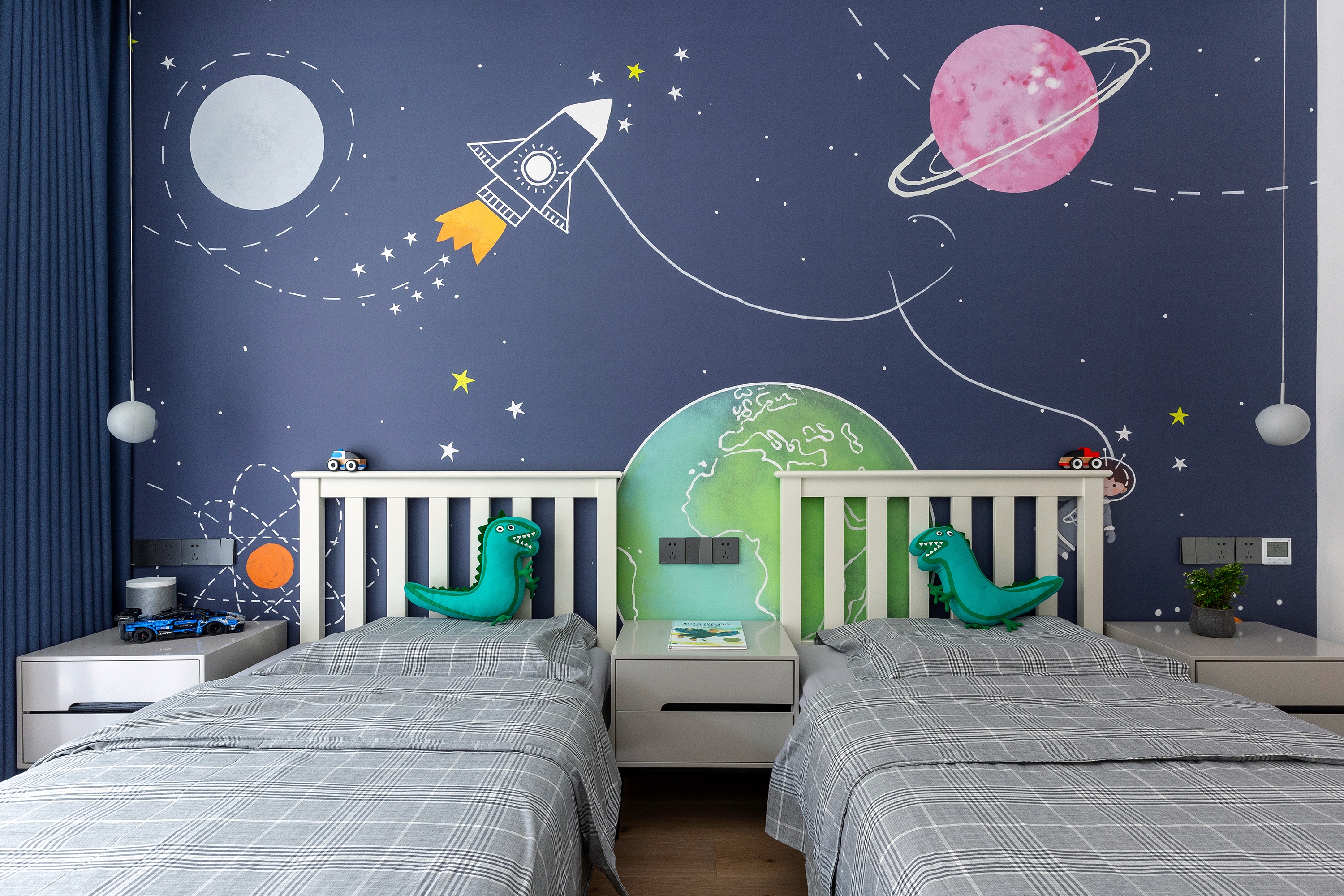 保證孩子活動的時候有足夠的空間。主要的活動空間包含客廳、餐廳、書房、廚房、南陽臺。