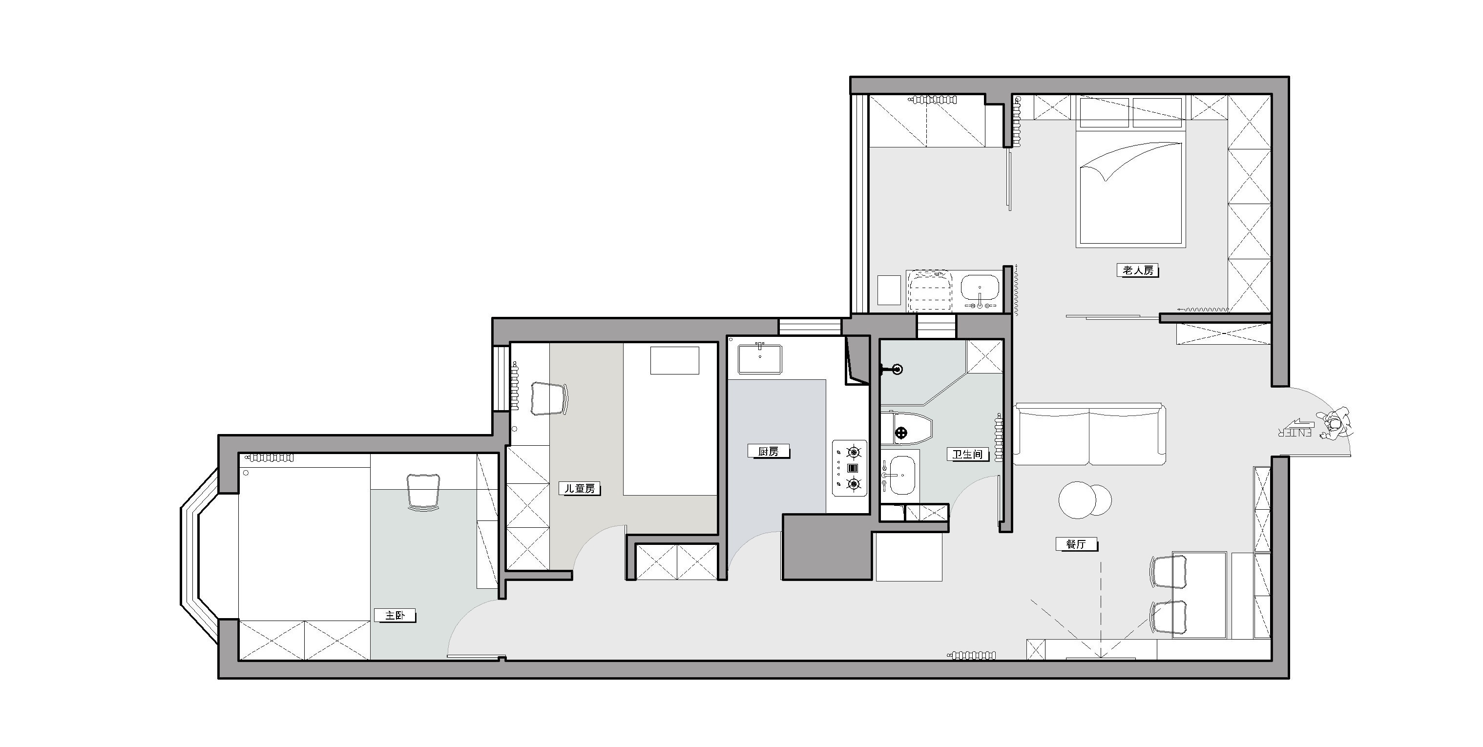 前面有說到老人的需求就是想要一個洗衣間,并且在使用中不會打擾到其他人。洗衣間設(shè)計了洗手池,洗漱就不用都去一個衛(wèi)生間,洗衣晾嗮直接一個地方解決。