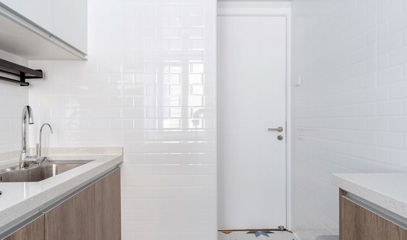 廚房更改成了U型布局,增加儲物空間的同時,擴(kuò)大操作空間。