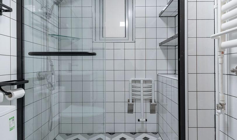 原始淋浴區(qū)只有75公分,改造后淋浴區(qū)擴(kuò)大到了90公分,洗澡更加舒適。小窗戶對面是洗衣間陽臺,可間接增加衛(wèi)生間的通風(fēng)采光。