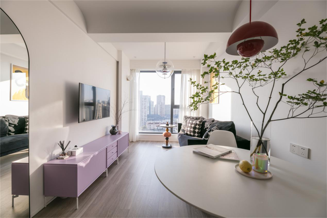 | 案例名稱 | 60㎡明凈通透、簡約優雅小兩居,紅的、黃的、紫的...點綴色,太好看了! | 戶型 | 兩居室 | 案例面積 | 60㎡ |