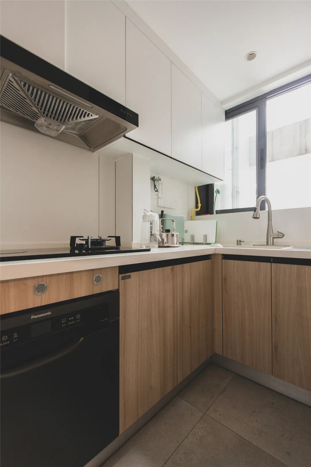 封起來的廚房,還放下了冰箱和洗衣機,延伸出來的臺面可以用來放置采購的食材和常用的小家電。