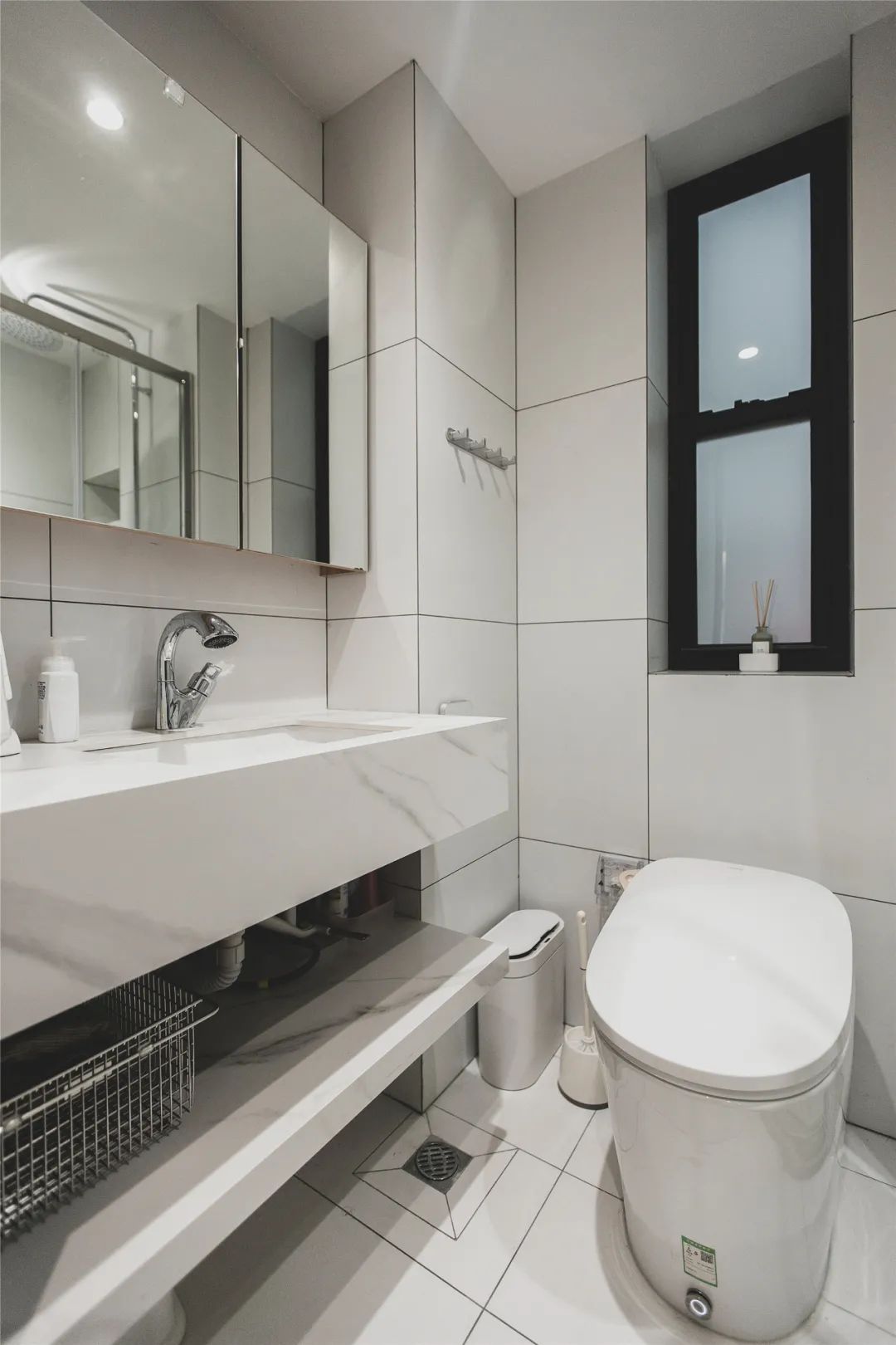 原先暗衛,現在用通透的白色墻磚提亮整體的空間明度,也顯得干凈整潔。