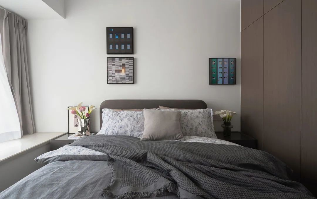 主臥格局還是比較合理通透的,左側(cè)為衣帽間,右側(cè)為陽(yáng)臺(tái)空間,中間部分則是床鋪的位置,通過(guò)定制設(shè)計(jì)解決床和床頭柜,讓空間百分百得到利用。陽(yáng)臺(tái)封窗處理,與主臥之間不設(shè)隔斷,讓活動(dòng)空間更寬敞。陽(yáng)臺(tái)打造儲(chǔ)物柜,提升收納能力,以保證空間整潔。