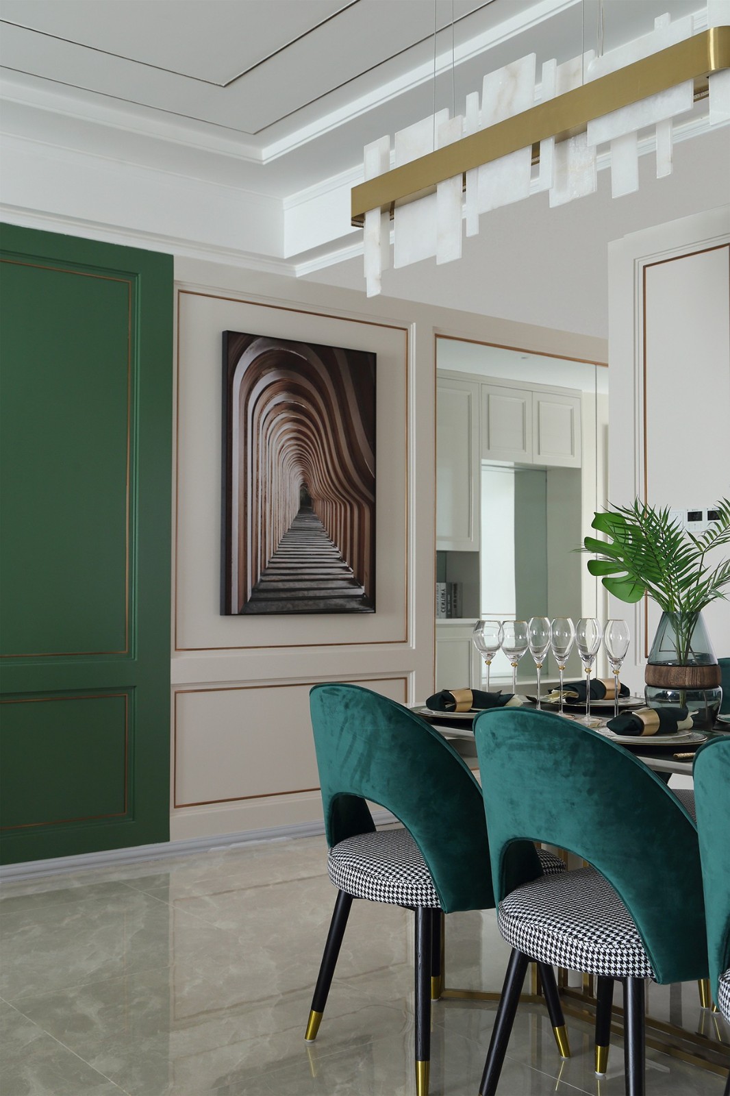 深深淺淺的綠,層次分明,為生活注入詩意的蔥郁,蓬勃又寧謐,讓人可以在客廳歡樂的笑鬧聲與閑適沉靜的慢生活間自由切換。