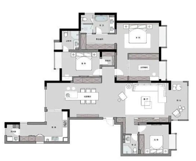 餐廳區域增加西廚空間,同時島臺設計又滿足了烘焙制作所需要的臺面空間,充裕的操作空間讓屋主可以得心應手地制作各種美食。
