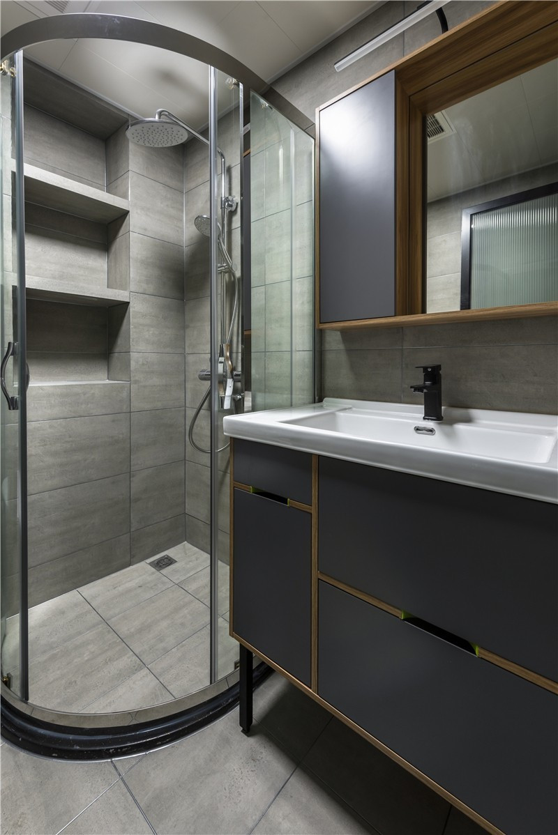 屋主希望客廳要簡潔大氣,電視背景可以留白或做整面的柜子,恰好客廳的尺寸夠大,所以,我們在沙發背景做了減法,電視墻做了整面展示柜。