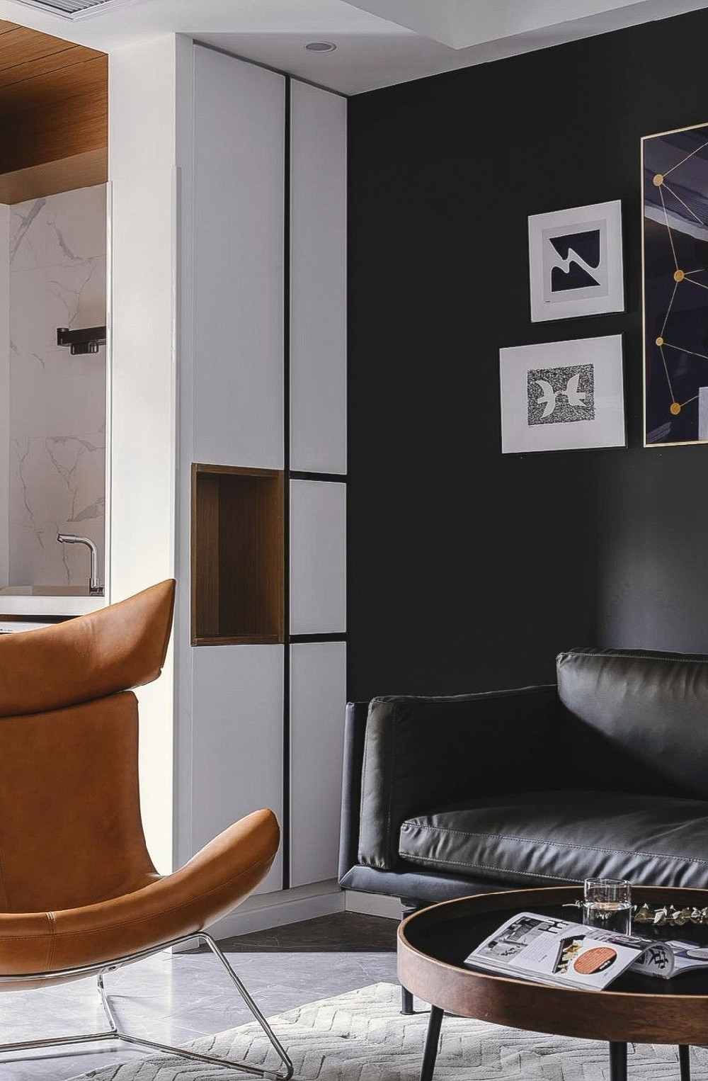 黑與白,冷與暖,強(qiáng)烈的對(duì)比,搭配簡約而不簡單的家具和裝飾,碰撞出干凈純粹的現(xiàn)代北歐,時(shí)尚大氣中增添了幾分溫馨。