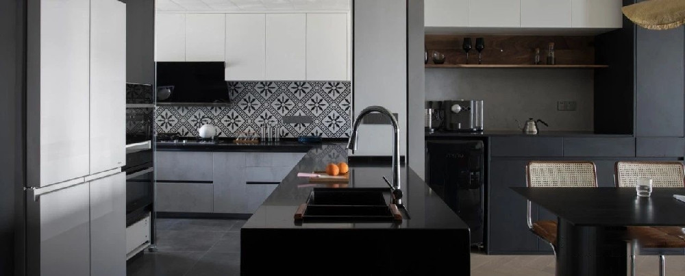 水吧臺(tái)劃分廚房和餐廳,卻因其具有的開(kāi)放性消除了兩個(gè)空間的邊界生硬感,餐廚之間既分又合。經(jīng)過(guò)設(shè)計(jì)后的餐廚關(guān)系可以滿(mǎn)足三個(gè)場(chǎng)景的使用:一,餐桌靠近雙開(kāi)向的廚房吧臺(tái),方便拿放餐品;二,灶臺(tái)上還在慢火燉著的湯,坐在餐桌用餐或看書(shū)的同時(shí)就可以快速觀(guān)察到;三,想要幫助準(zhǔn)備食物的人,不用入廚,在吧臺(tái)的另一邊就可以打著下手。