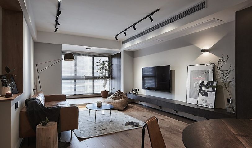 客廳,溫潤的木質(zhì)飽有細(xì)膩的紋路,低飽和度的色彩搭配,將柔軟與剛硬交錯(cuò)糅合。
