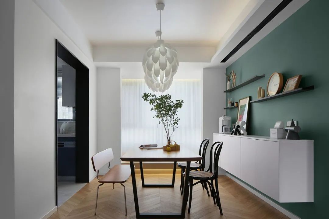 因?yàn)槌W∪丝谥挥?口人,所以設(shè)計(jì)師大膽地舍棄了入戶衛(wèi)生間,將廚房面積擴(kuò)大一倍,并進(jìn)行了雙動(dòng)線設(shè)計(jì),食材采買后由門廳落塵區(qū)直接進(jìn)入廚房再?gòu)膹N房到達(dá)餐廳,空間動(dòng)線更加合理和流暢。