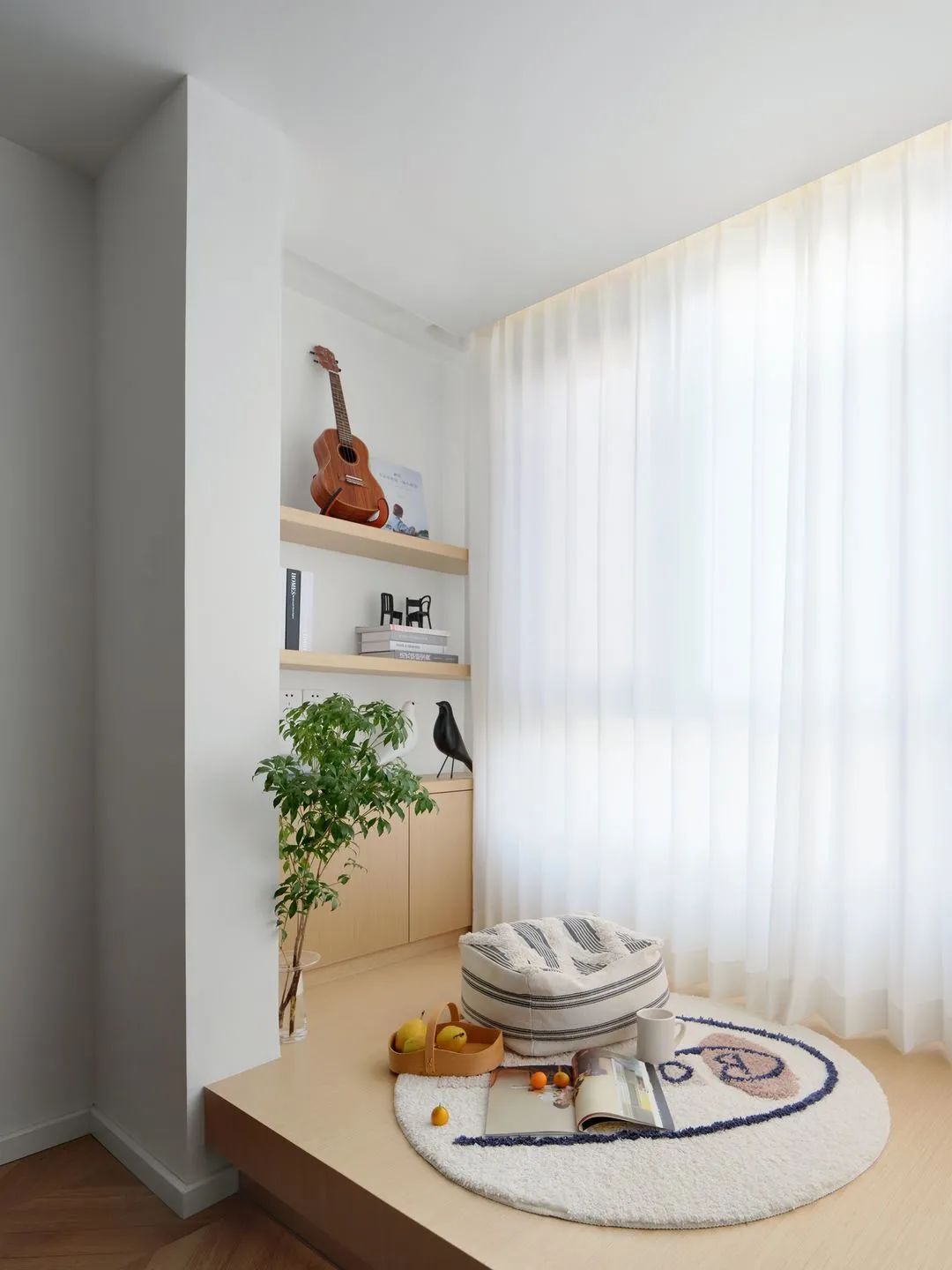 木質(zhì)地臺(tái)打造一個(gè)隨意的休閑區(qū)域,看書觀景,輕松愜意。