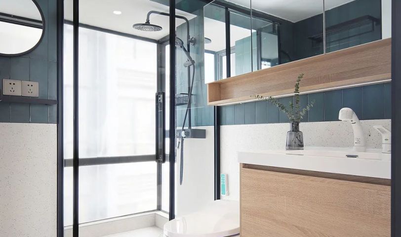 廚房做了無主燈設計,筒燈能讓整個空間更溫暖明亮有層次。原木色搭配小方磚、水磨石地板,整個空間清新自然,加入長虹玻璃的滑動門,為廚房空間賦予了另一種情調。下方做柜子,完美解決收納問題。