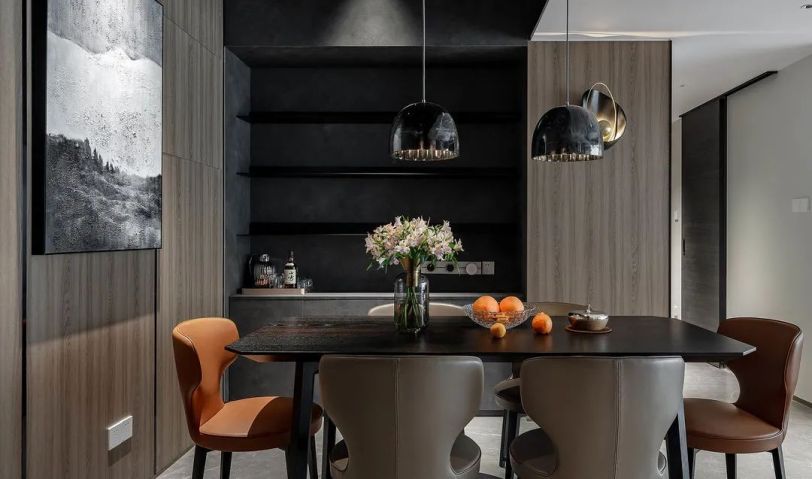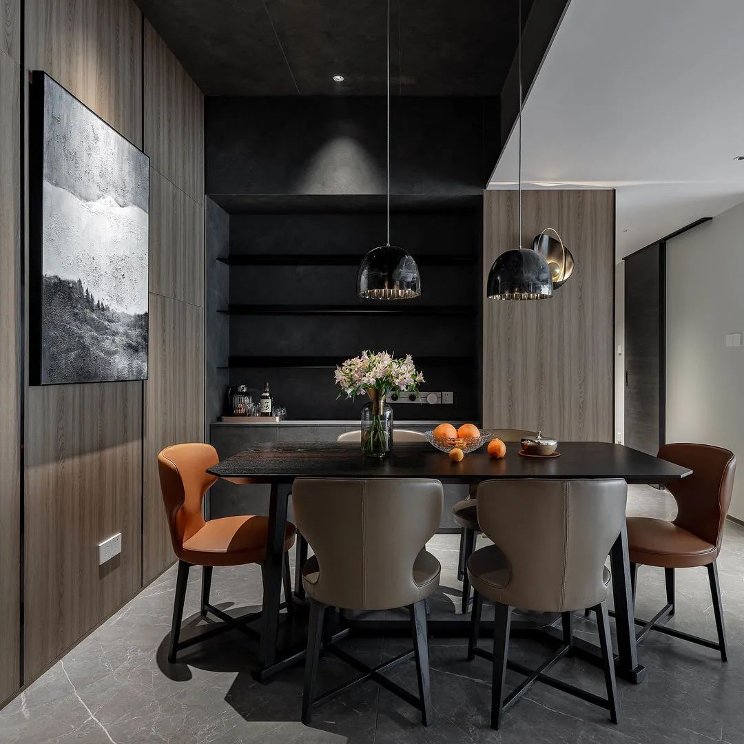 屋主陳先生是一位儒雅的70后,飽讀詩書且看過大千世界,整體裝飾元素都是沉穩克制的,灰調的材質雖暗卻明,點綴零星橘色軟裝提亮空間