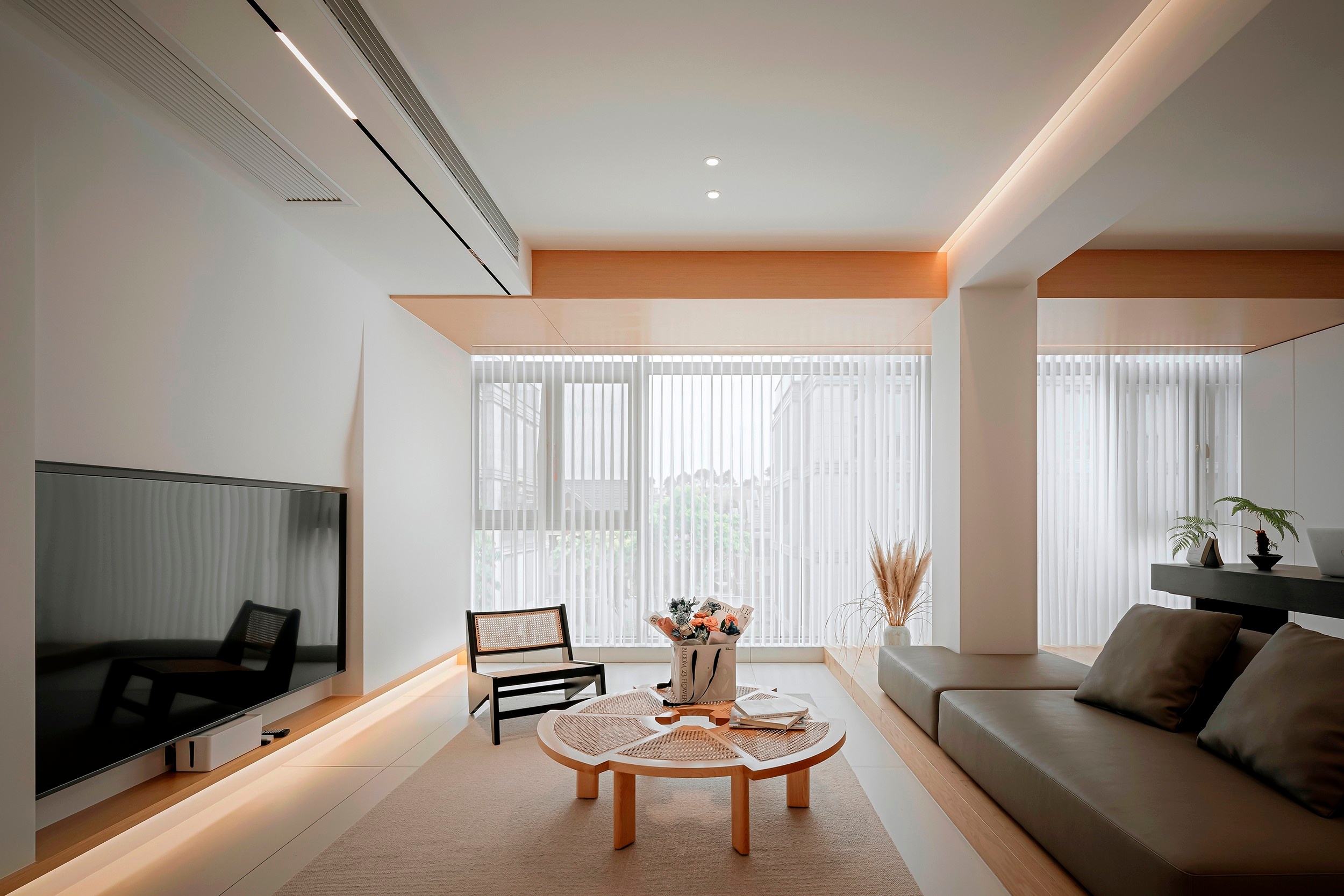 放棄復(fù)雜設(shè)計,轉(zhuǎn)而以幾何變化和材質(zhì)紋理搭配構(gòu)成空間設(shè)計感,比起元素堆砌,刪繁就簡更加考驗(yàn)設(shè)計師的功底。