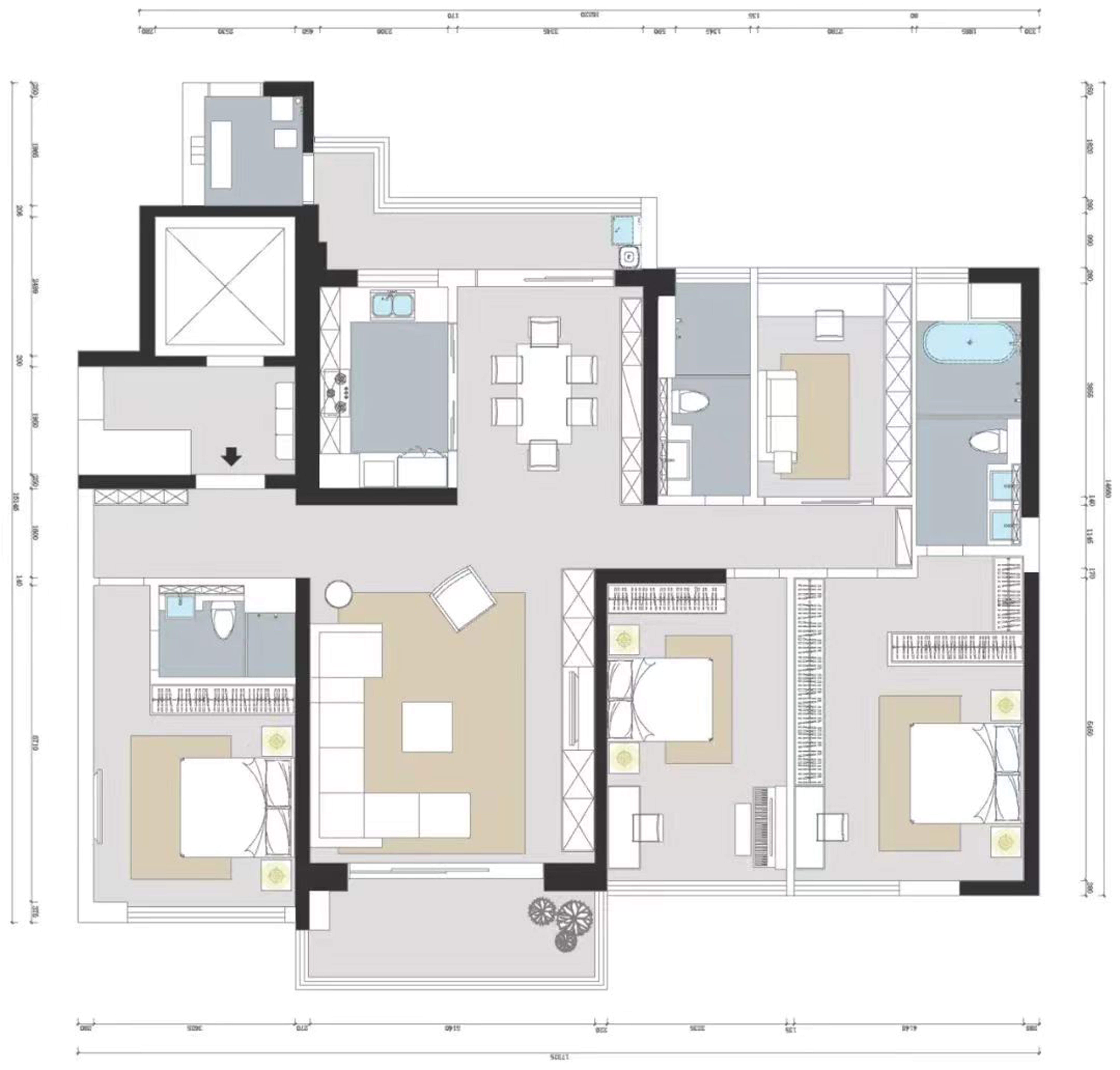 | 案例名稱 | 精裝修改造 | 戶型 | 三居室 | 案例面積 | 225㎡ |
