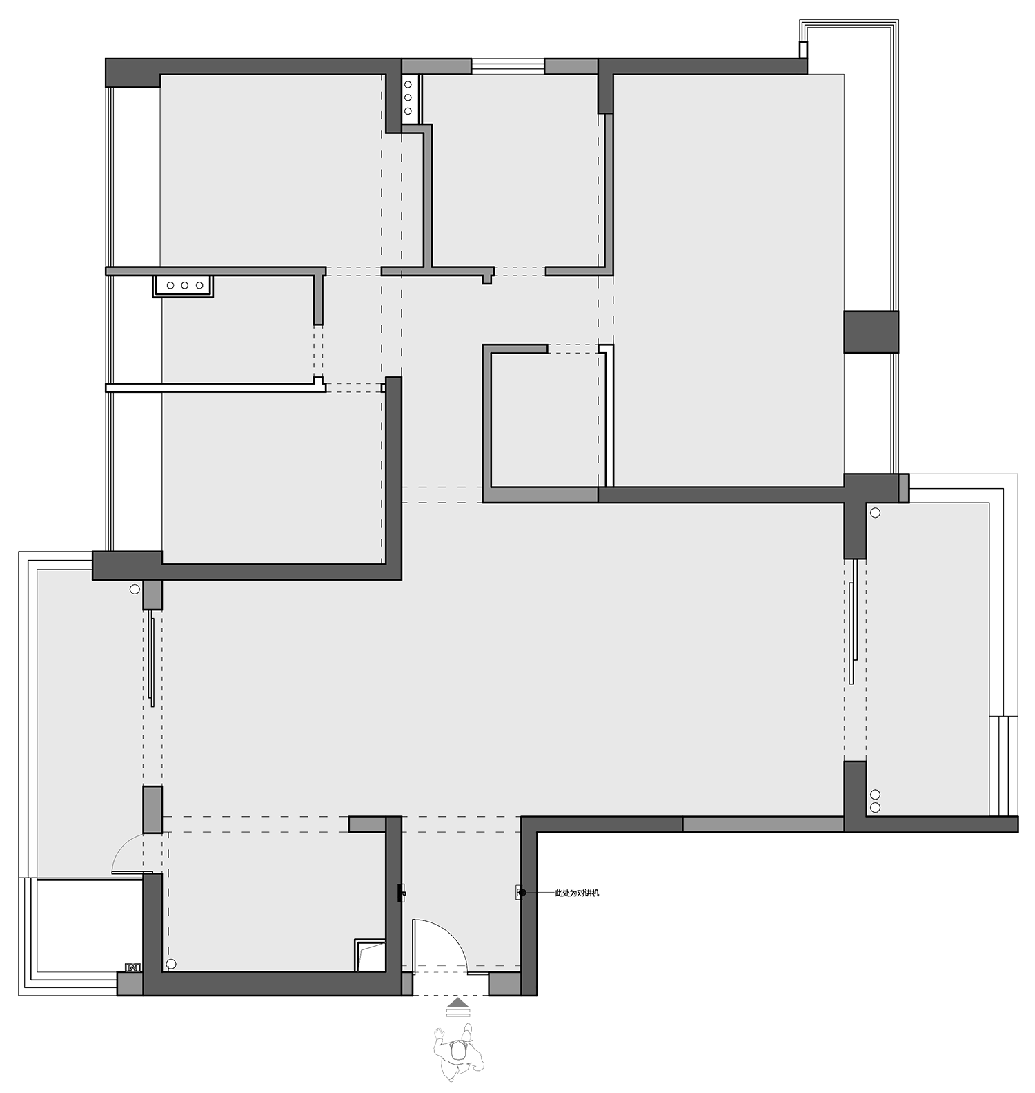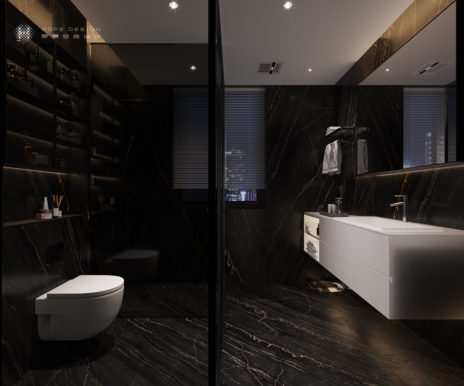 推門而進,踏入”山林影徑“,玄關直入,魅影深灰色調向盡頭無限衍生。