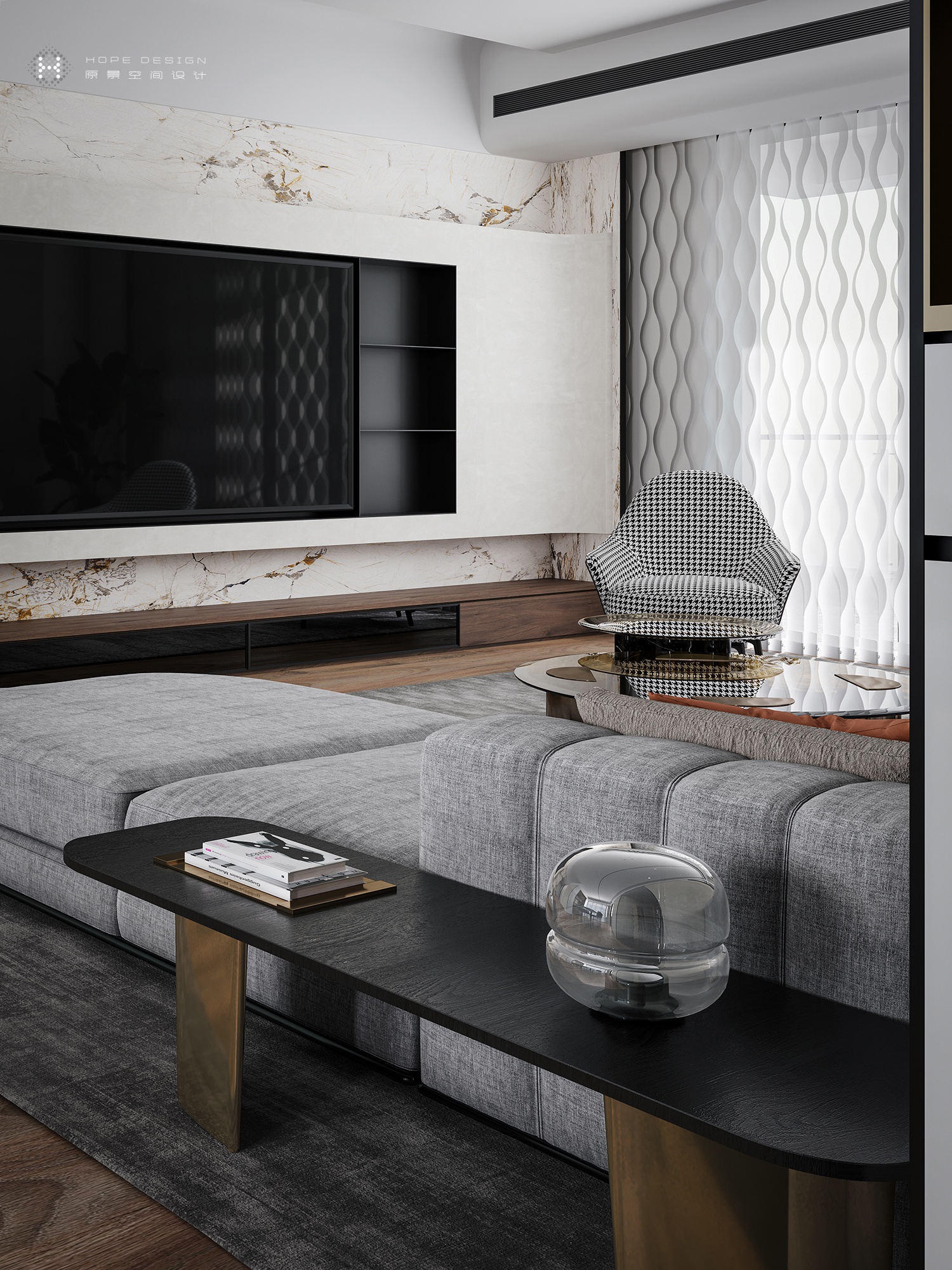 入戶而進,柔光透影,客廳空間映現于眼前。