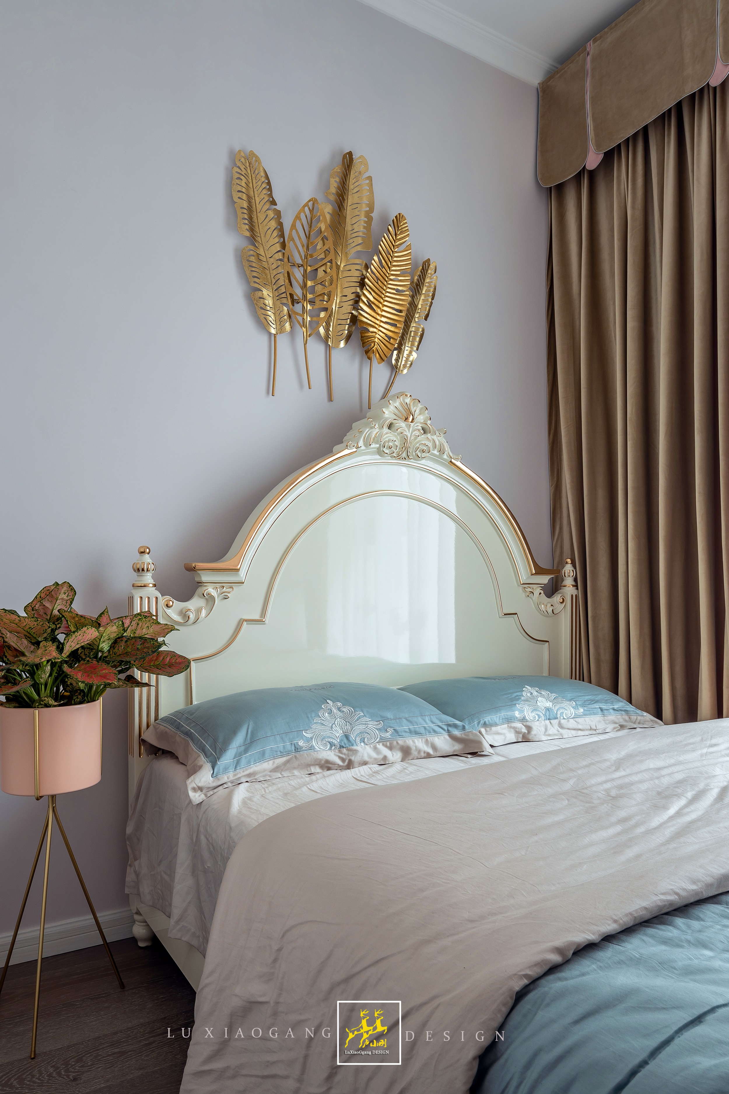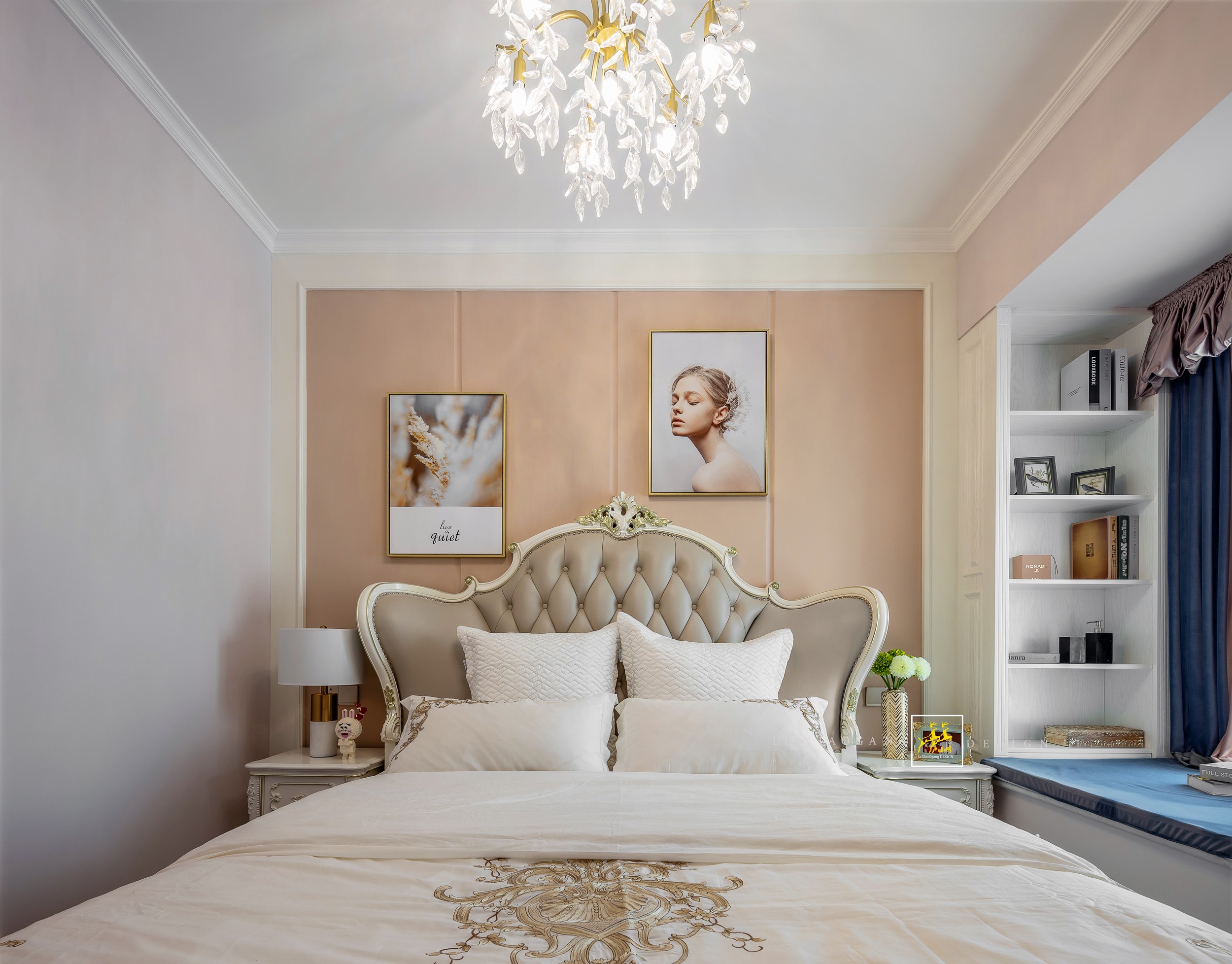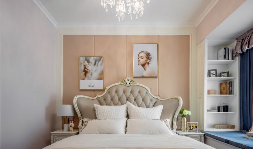 簡約歐式更加注重臥室的功能與實用性,所以窗臺處飄窗與梳妝臺的設計實現了室內空間的增值利用。臟粉與淺紫的高級色彩拼接搭配高級冷色系窗簾,展現出現代時尚的低調優雅。細節之處盡顯品質生活
