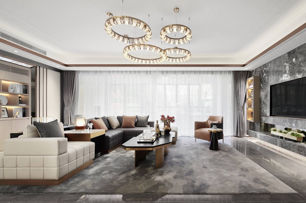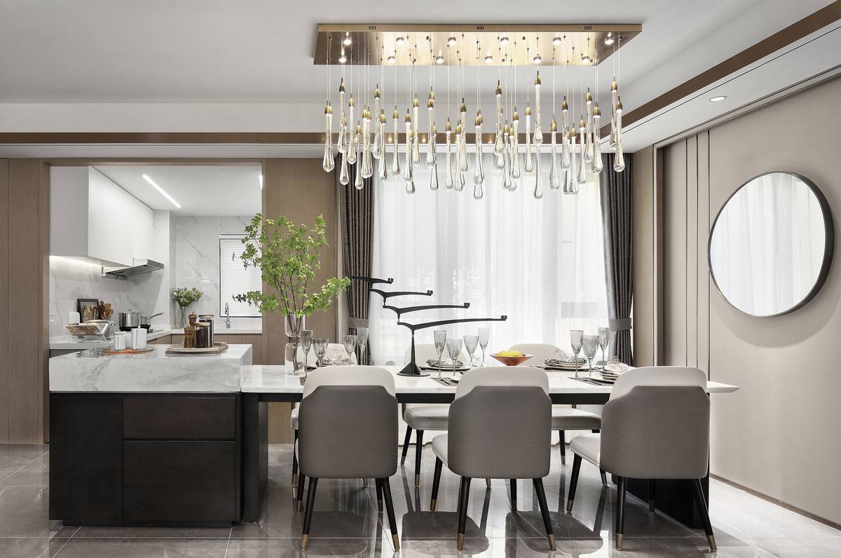 金色圓形吊燈勾勒出別致的精巧