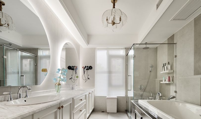 簡單、亮堂和實用是對衛生間最大的期望,直線型衛生間使空間一覽無遺,左右直曲線條的對望,動靜相合。多水池設計更是為時間管理做足了準備。