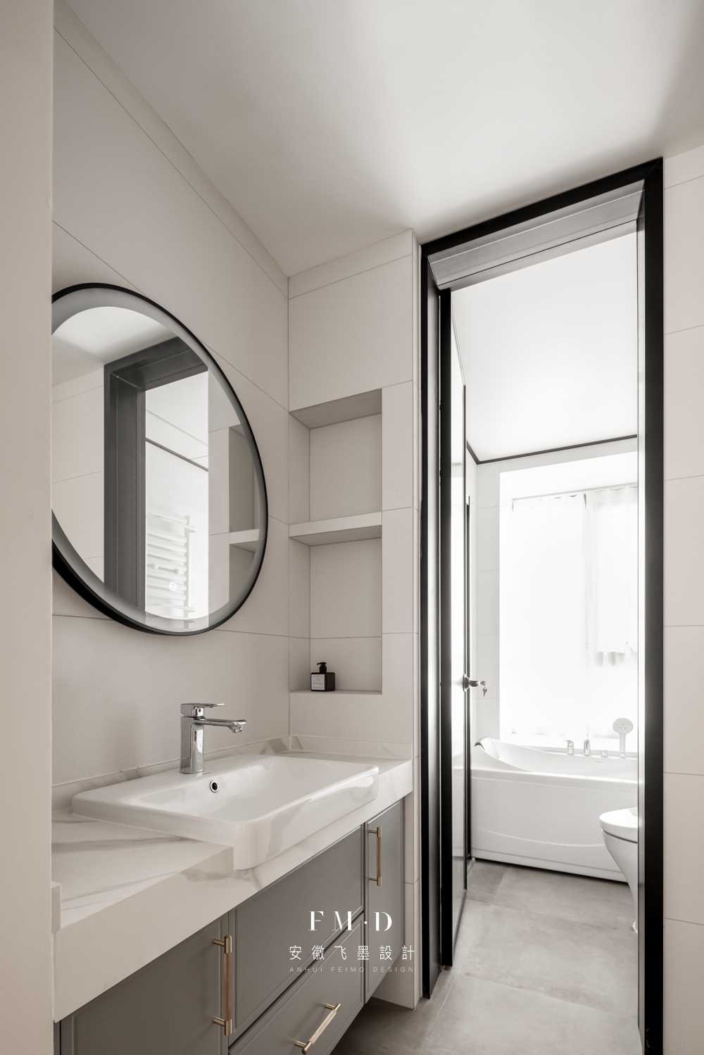 原始的客衛專供業主的四口小家使用,干濕分離,洗手臺外移,利用壁龕避免臺面凌亂。