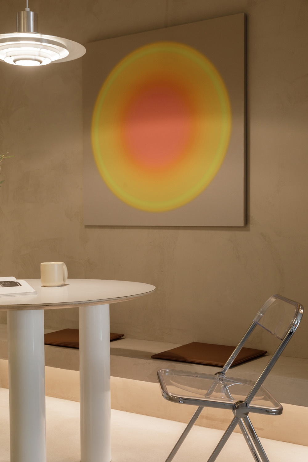 餐廳墻面掛了一副日落光暈風(fēng)格的裝飾畫,抽象的光暈圖案很有裝飾感,在靠墻下方做了一排卡座,師傅現(xiàn)場(chǎng)用鋼架制作,保證承重,表面固定木工板后刷漆,保證風(fēng)格和效果,下方布置燈帶讓空間的光源更有層次