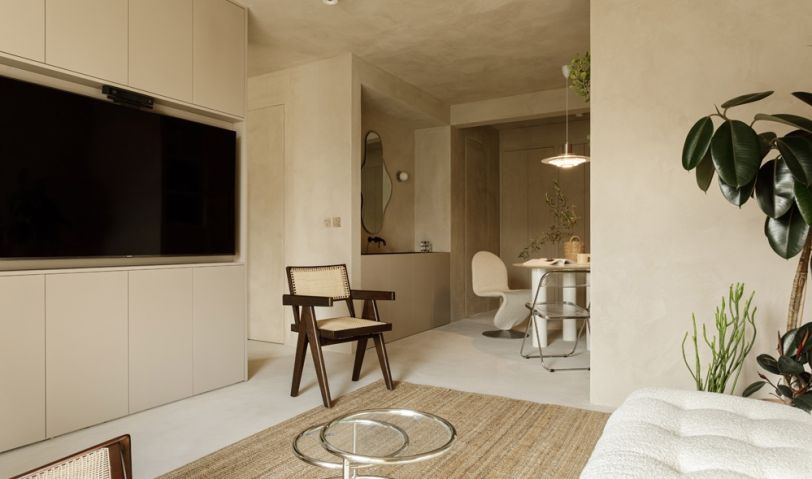 客廳的設(shè)計(jì)比較簡(jiǎn)單,硬裝除了墻面和地面的材質(zhì)沒有任何多余造型