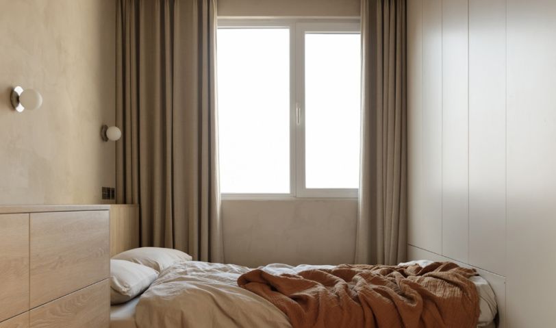 臥室是休息的地方,不需要太亮,所以頂面除了靠墻的一條燈帶之外沒有其他多余的光源,床頭兩側(cè)的壁燈可以保證睡前看書看手機(jī)時(shí)的燈光