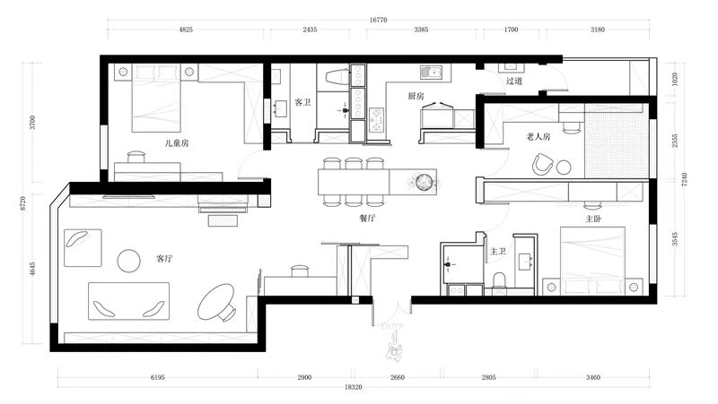 L型衣柜滿足儲(chǔ)物功能的同時(shí),也保證了右側(cè)孩子的活動(dòng)空間,增加層次感。