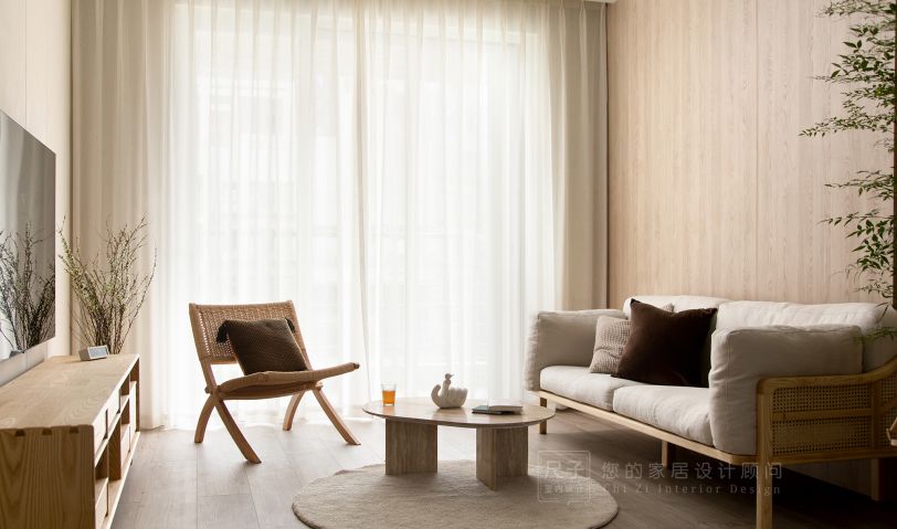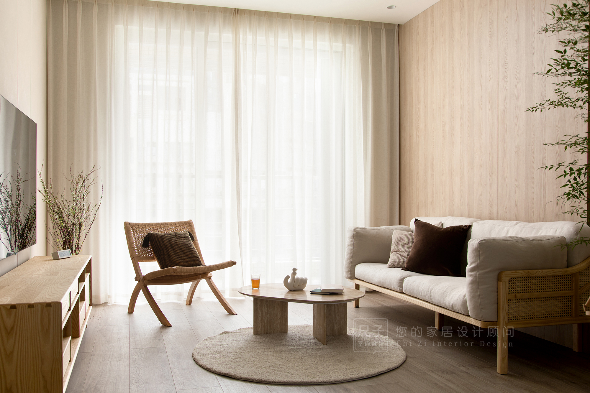 客廳色調清淺而純粹,原木色的運用給整個空間帶來溫潤的觸感。