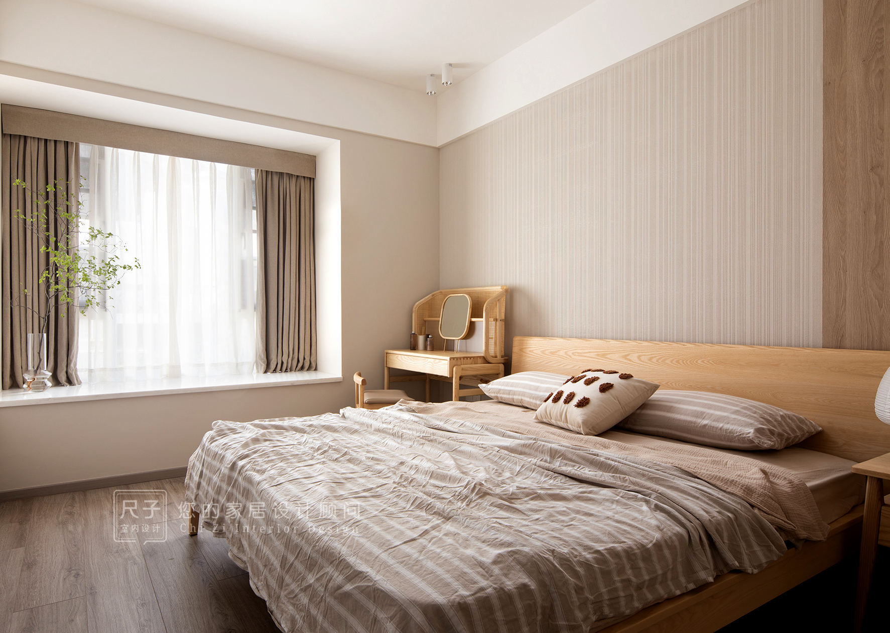 臥室以簡為美、不事奢華,是淡雅安靜的模樣。
