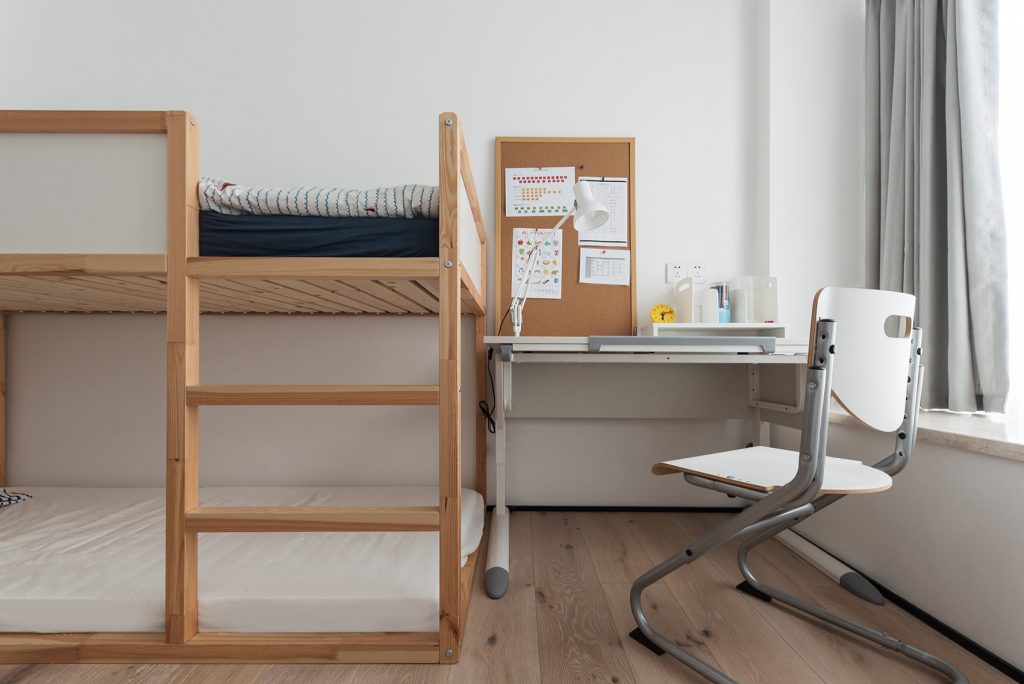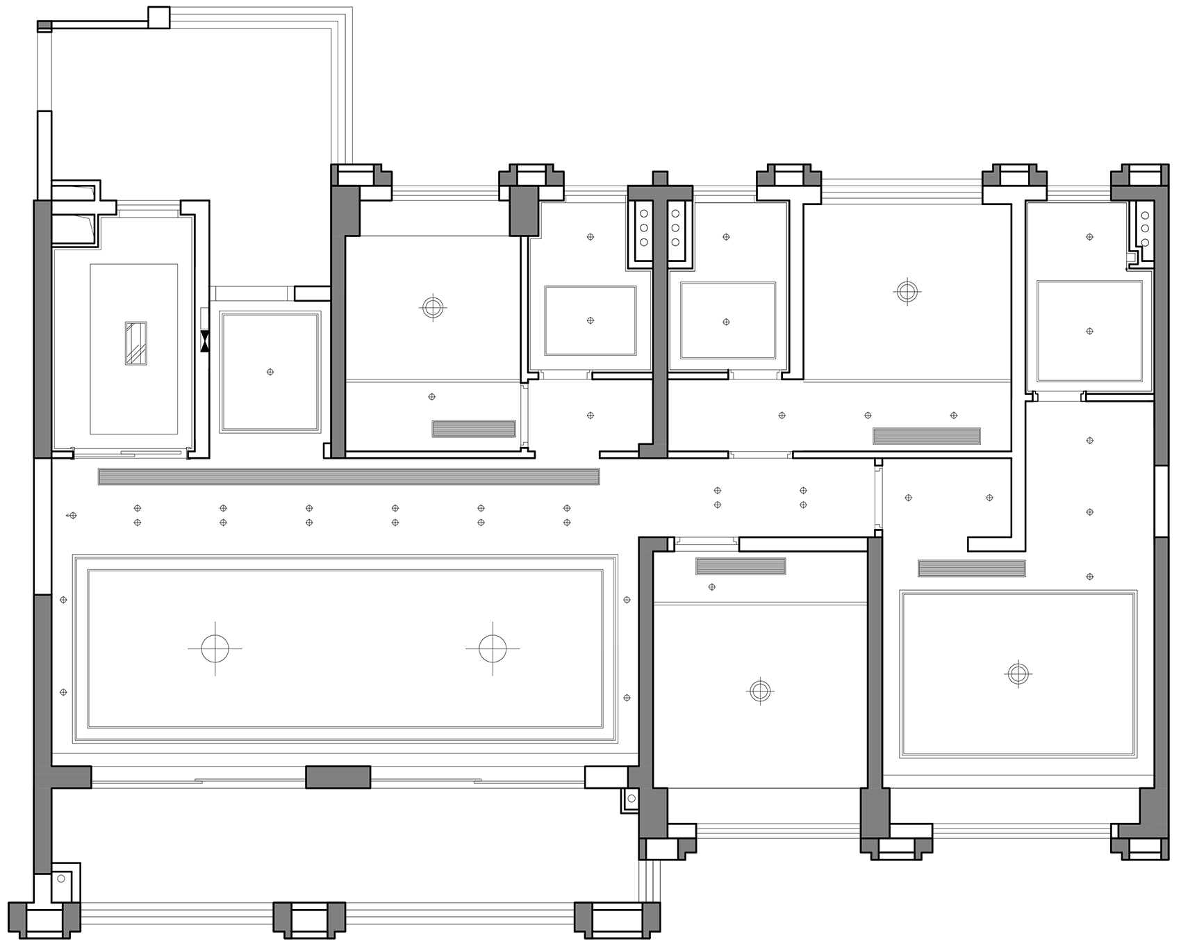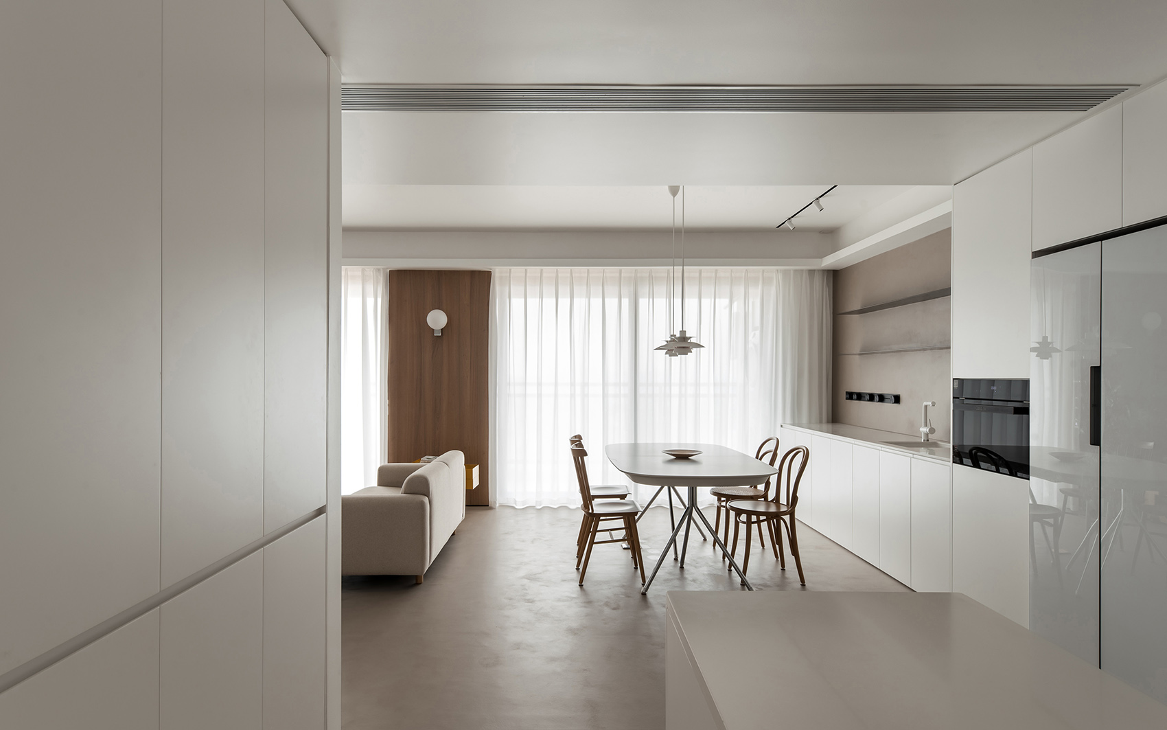 書房區(qū)域進(jìn)行了抬高,平常可做為書房使用,偶爾來客可以在地臺上鋪上軟墊,關(guān)上門拉上簾子,又是一個私密的空間,在這個空間中,整體上堅持“少即是多”的簡約