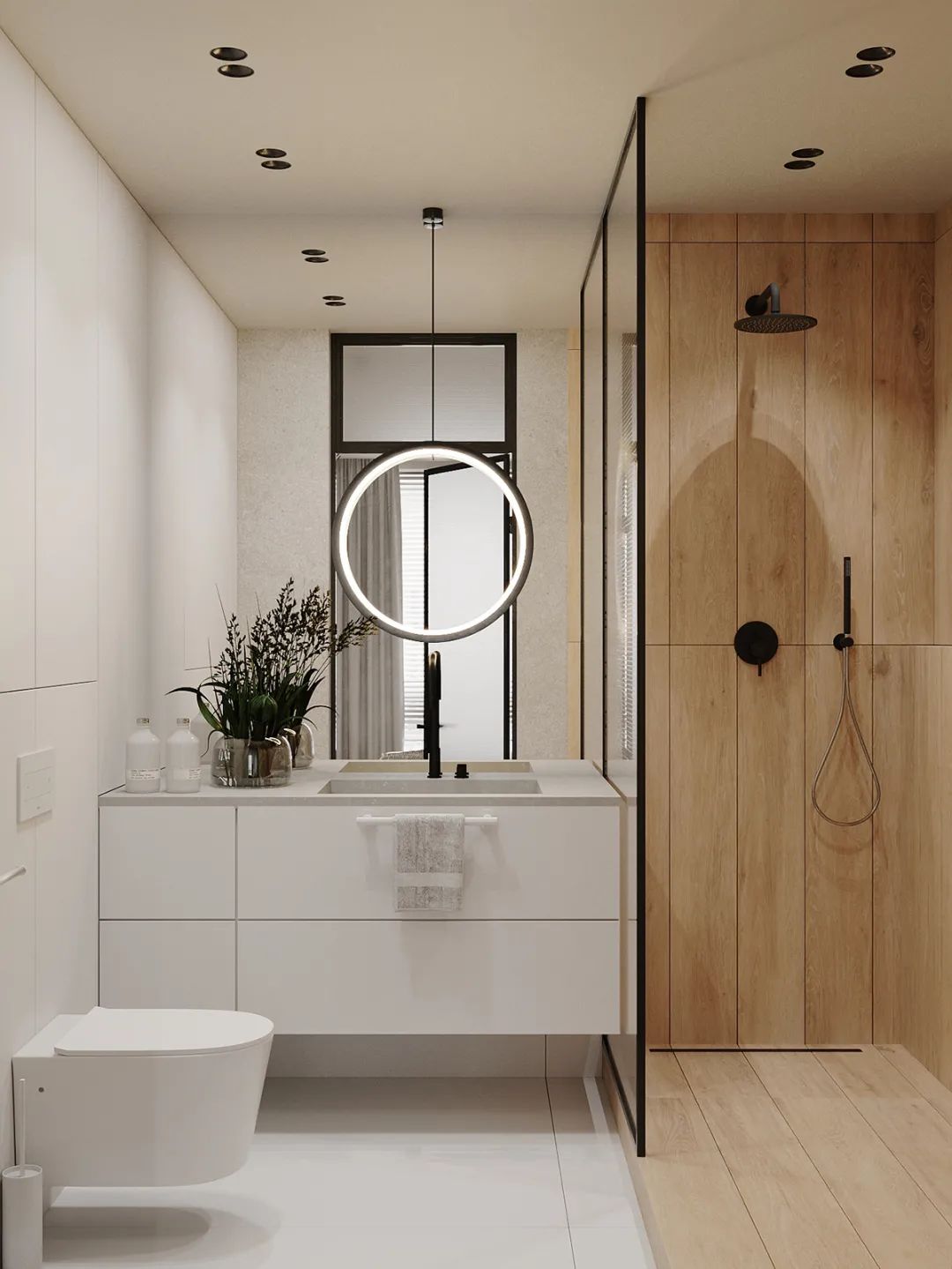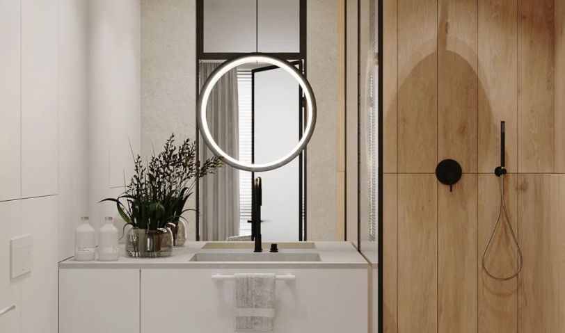 主衛采用干濕分離+入墻式設計,最大化保證地面、墻面的清爽整潔,浴室鏡則在一定程度上起到延伸視覺的效果,緊湊但不局促。