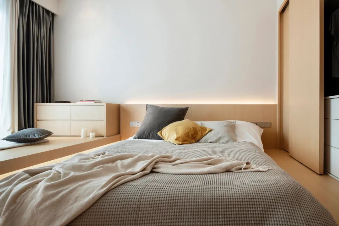 女主人是甜品店店長,性格開朗卻很喜歡宅家、熱愛看書,夫妻倆工作都比較忙,希望家里極簡又溫馨,盡量避免冗余,保持空間通透、清新。