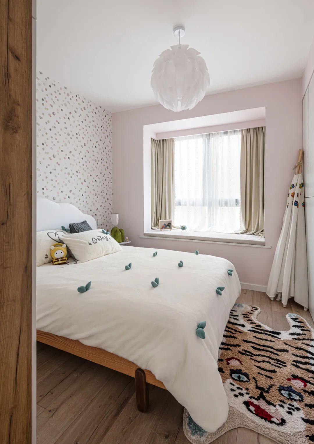 視覺色彩與孩子的情緒及心理都有著相當重要的關聯性,所以兒童房整體以粉紅色為主。