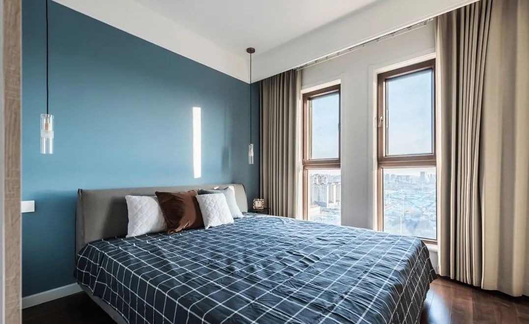 臥室沒有過多的裝飾,純色乳膠漆墻面+無主燈設(shè)計,放大空間視覺感。