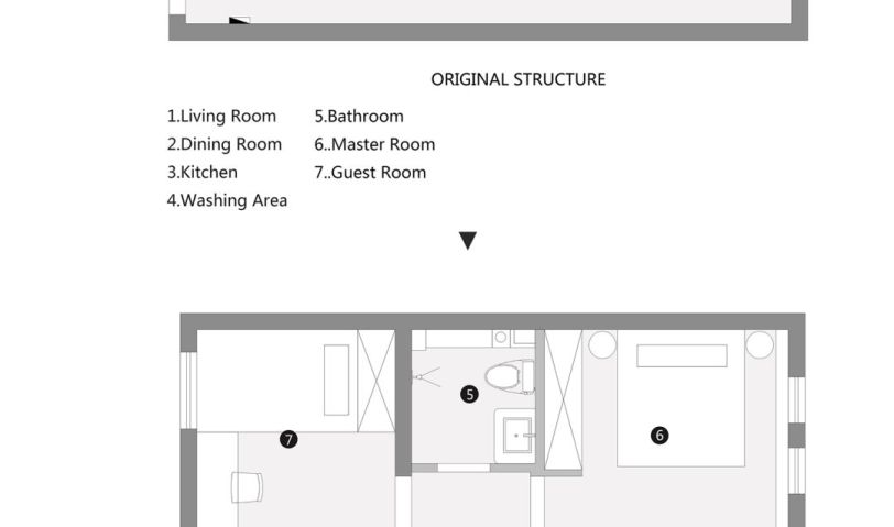 1. 打開廚房和臥室的隔墻,擴大公共活動區(qū),視野暢通無阻。