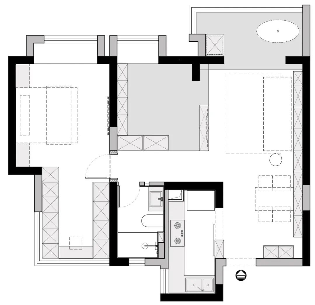 陽臺一角,通過不同的高差分割功能區(qū),放置浴缸,讓空間變得生動有趣,增加生活的儀式感。