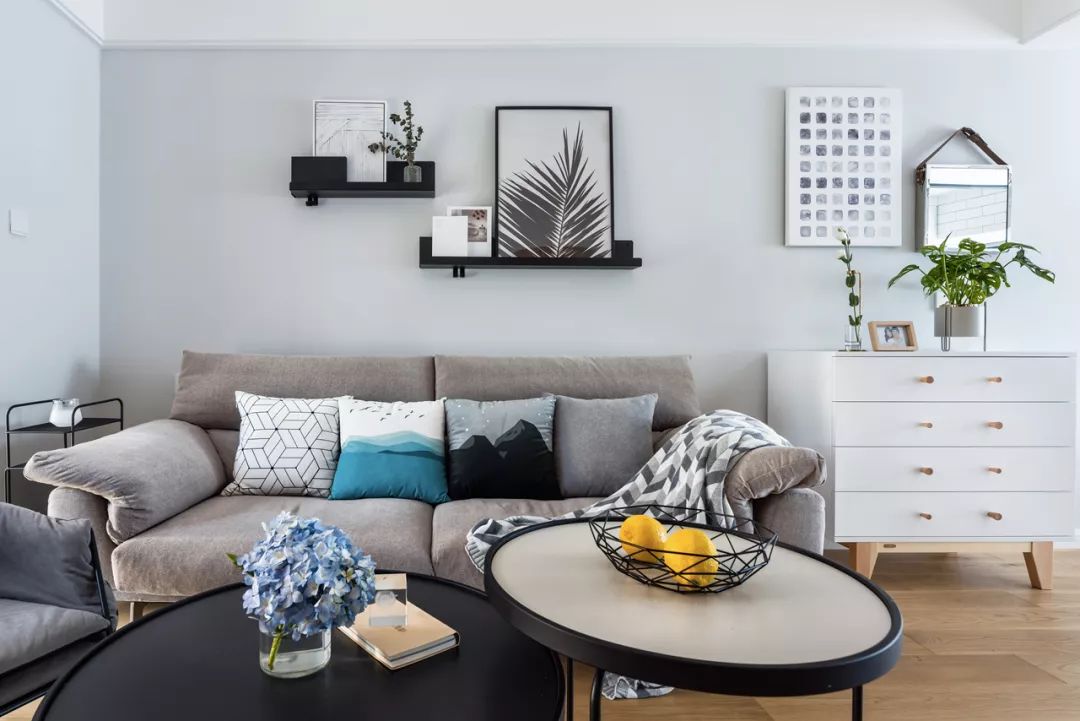 客廳是簡潔與時尚的代表,布藝沙發與高矮色差,讓客廳的休閑度大幅提升。