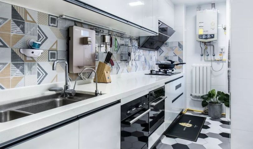 地面六角磚、墻面花磚,使廚房充滿生機,同時也使烹飪成為了一件充滿樂趣的事。
