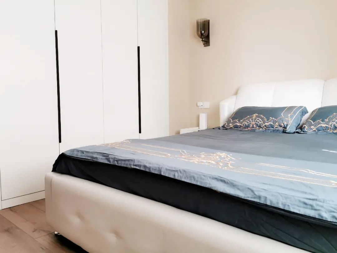 主臥內(nèi)嵌式衣柜借用了榻榻米房的空間,并沒有占用原來主臥的面積。