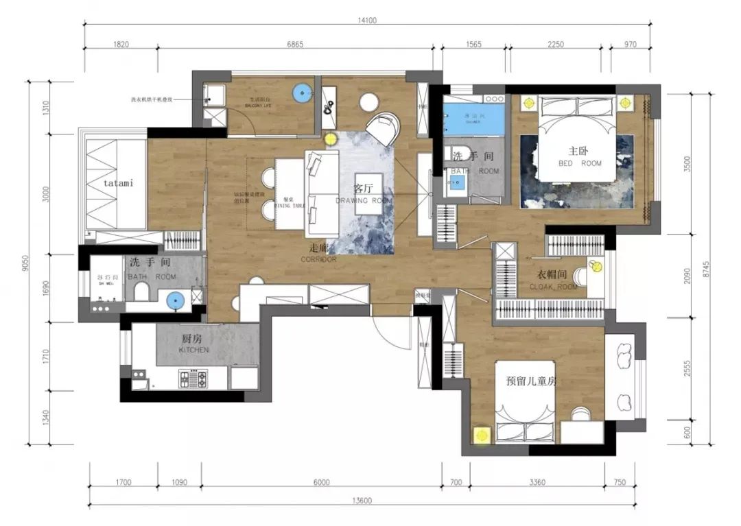 3. 榻榻米房間借用一部分客餐廳的位置,可臨時(shí)留宿,也增加了收納功能。