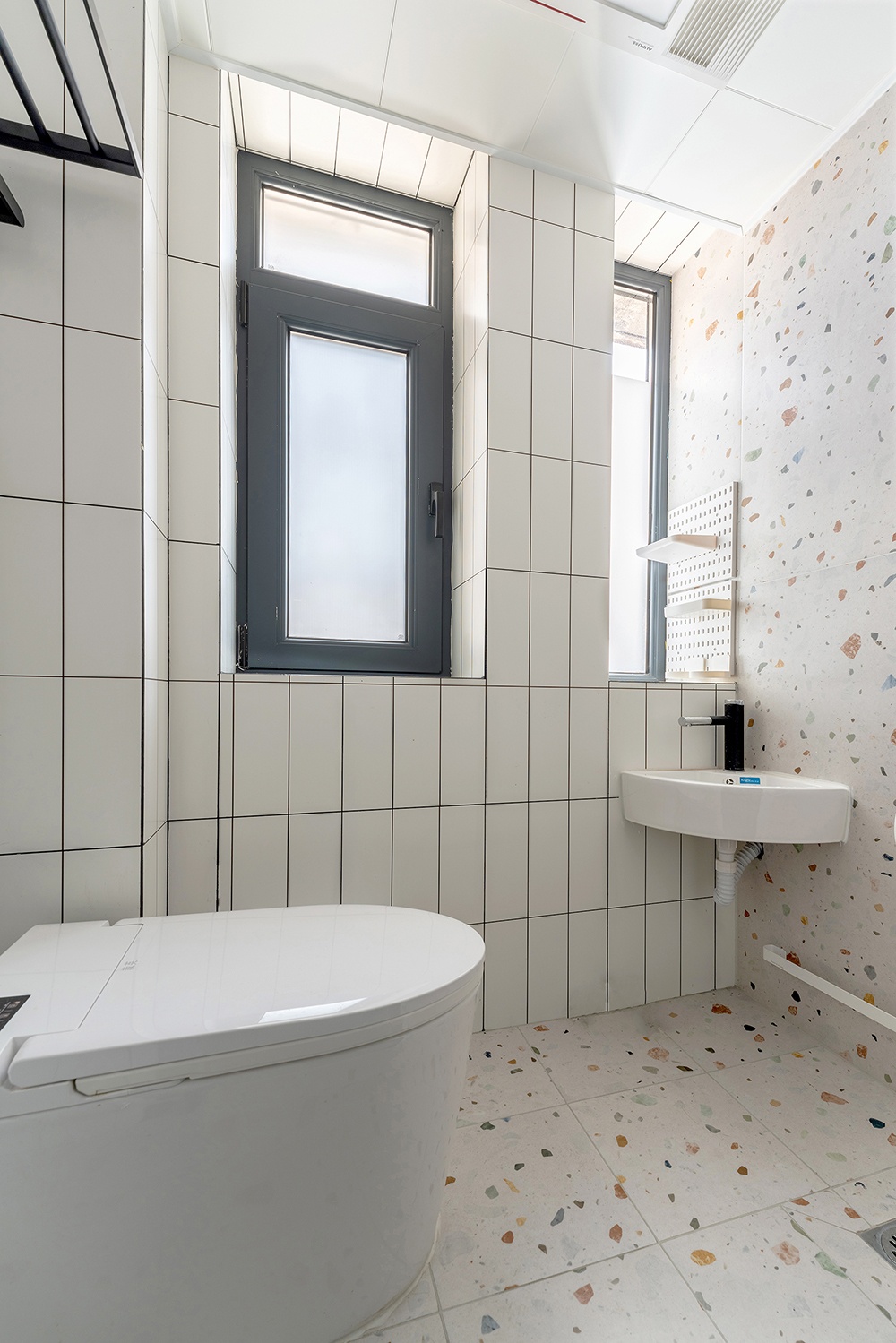 原衛生間只有1㎡,格局外擴改造后,面積達到了1.7㎡。考慮到家里的兩個小朋友,還特意增加小洗手池,方便他們使用。