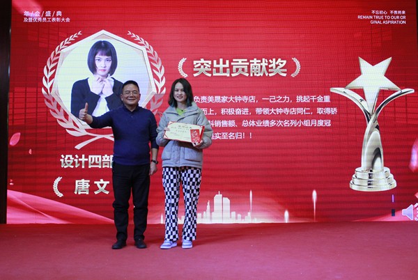 本次年會在祥和的氛圍中徐徐展開,方總現場總結了美晟家過去一年來取得的成績,公司總體業績突破性邁進3600萬大關,總店規模擴充到2000余平米,大鐘寺分部業績突破700萬元,公司整體實現了跨越式的穩步發展。